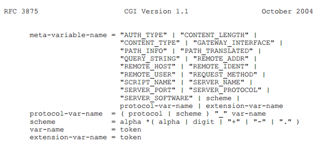 Meta-variables元变量:通过定义系统环境变量的方式,来进行数据传递;如下是RFC定义的基本变量的名称,在文档里有详细的说明
