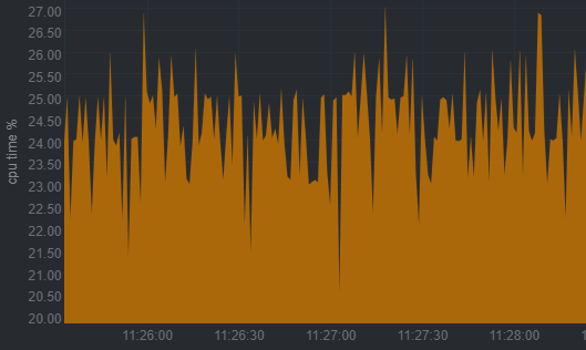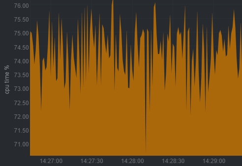 1 2 3 4 5 6 7 8 9 10 11 12 13 14 15 16 17 18 19 20 21 22 23 24 25 26 27 28 29 30 31 32 33 34 35 36 37 38 39 40 41 42 43 44 45 46 def cpu_percent (self, interval=None ): ''' ... ''' blocking = interval is not None and interval > 0.0 if interval is not None and interval < 0 : raise ValueError("interval is not positive (got %r)" % interval) num_cpus = cpu_count() or 1 def timer (): return _timer() * num_cpus if blocking: st1 = timer() pt1 = self._proc.cpu_times() time.sleep(interval) st2 = timer() pt2 = self._proc.cpu_times() else : st1 = self._last_sys_cpu_times pt1 = self._last_proc_cpu_times st2 = timer() pt2 = self._proc.cpu_times() if st1 is None or pt1 is None : self._last_sys_cpu_times = st2 self._last_proc_cpu_times = pt2 return 0.0 delta_proc = (pt2.user - pt1.user) + (pt2.system - pt1.system) delta_time = st2 - st1 self._last_sys_cpu_times = st2 self._last_proc_cpu_times = pt2 try : overall_cpus_percent = ((delta_proc / delta_time) * 100 ) except ZeroDivisionError: return 0.0 else : single_cpu_percent = overall_cpus_percent * num_cpus return round (single_cpu_percent, 1 )