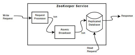 ZooKeeper集群中每个server都可以提供client的请求,client连接到一个具体的server后可以进行发送请求,Read请求,server可以通过本地的复制数据库直接提供服务。Write请求会通过一致性协议进行更新处理。
