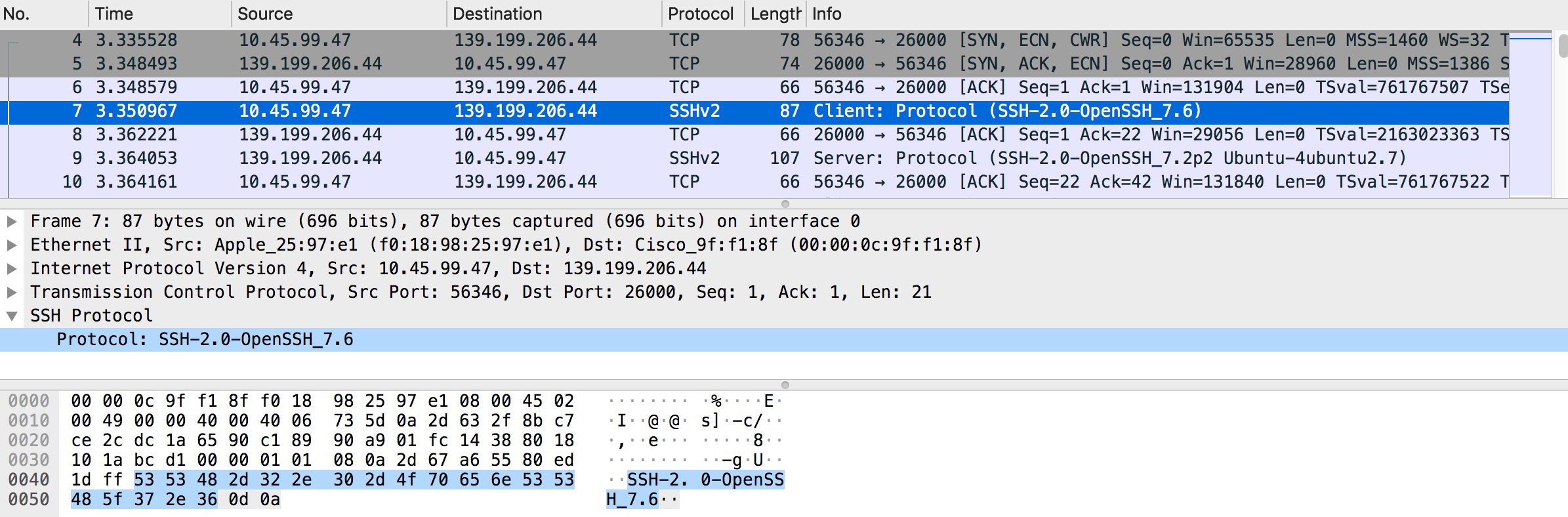 - 客户端发送自己的SSH协议版本号,SSH客户端