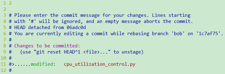 对这次提交的内容进行修改,并通过–amend命令进行提交,此时会提示是否需要对commit日志进行修改,保存后上个提交就被这次提交覆盖了。