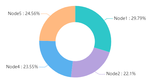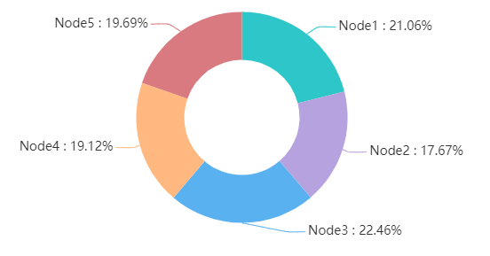 可以看到添加完5个节点后,整个HASH圆环每个节点的负载基本平衡,