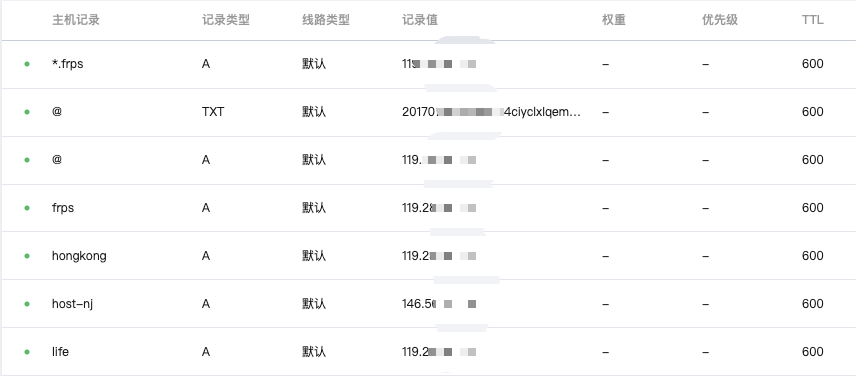 下面是我的walkerdu.com在腾讯云上配置的RRs列表: