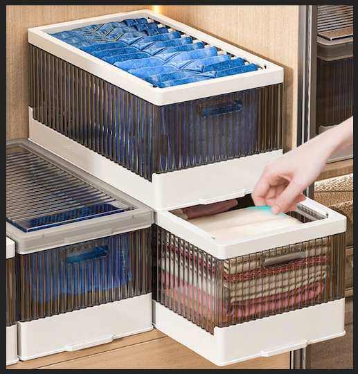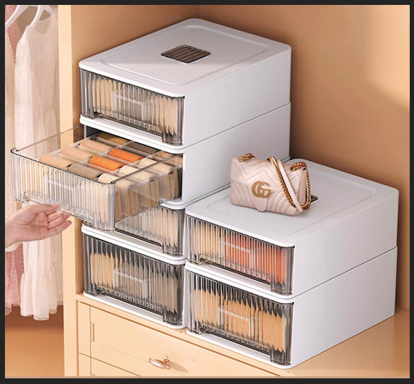 老大的衣物其实放在柜子里,也是堆积在一起,挺乱的,然后我又买了这个两款收纳盒:
