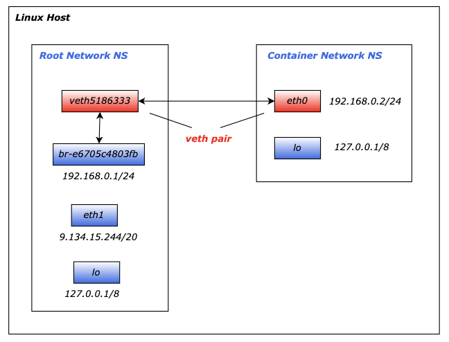 1 2 3 4 5 6 7 8 9 10 11 12 13 14 15 16 17 $ docker network inspect a1c6775b1ee5 [ { "Name" : "bridge" , "Id" : "a1c6775b1ee5708162e562d994f84538a29ab5ab5e3e0cfe05f831dc4c8b81d5" , ... "Options" : { "com.docker.network.bridge.default_bridge" : "true" , "com.docker.network.bridge.enable_icc" : "true" , "com.docker.network.bridge.enable_ip_masquerade" : "true" , "com.docker.network.bridge.host_binding_ipv4" : "0.0.0.0" , "com.docker.network.bridge.name" : "docker0" , "com.docker.network.driver.mtu" : "1500" }, ... } ]