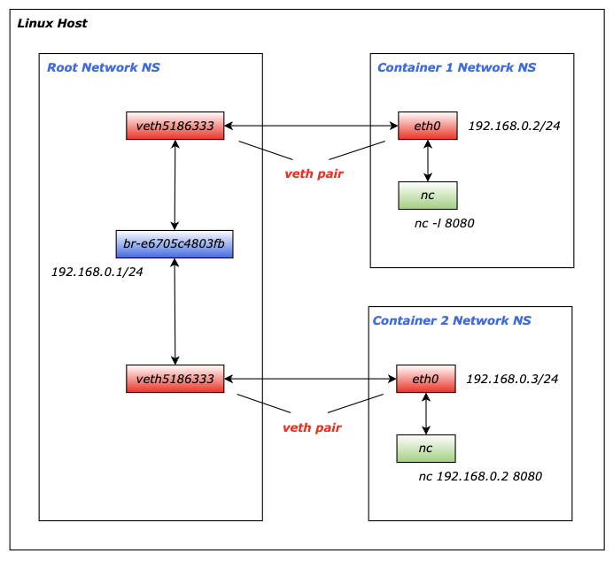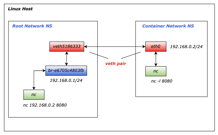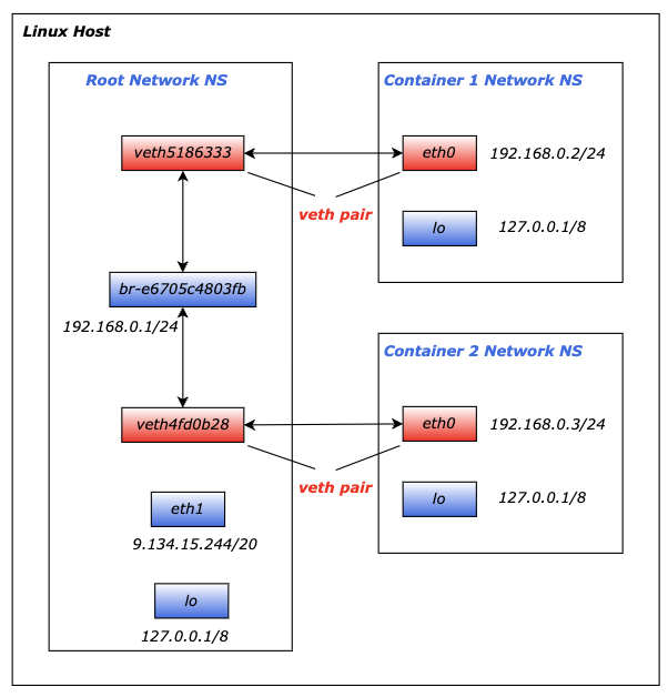 在网络层面 中,bridge network是一种链路层设备,用于在网络段之间转发流量。bridge可以是硬件设备,也可以是在主机内核中运行的软件设备。