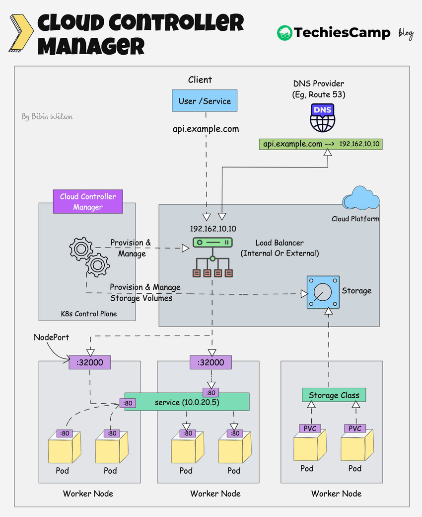cloud-controller-manager 是 Kubernetes 控制平面的核心组件,内嵌了云厂商定制化控制逻辑。它的主要功能包括: