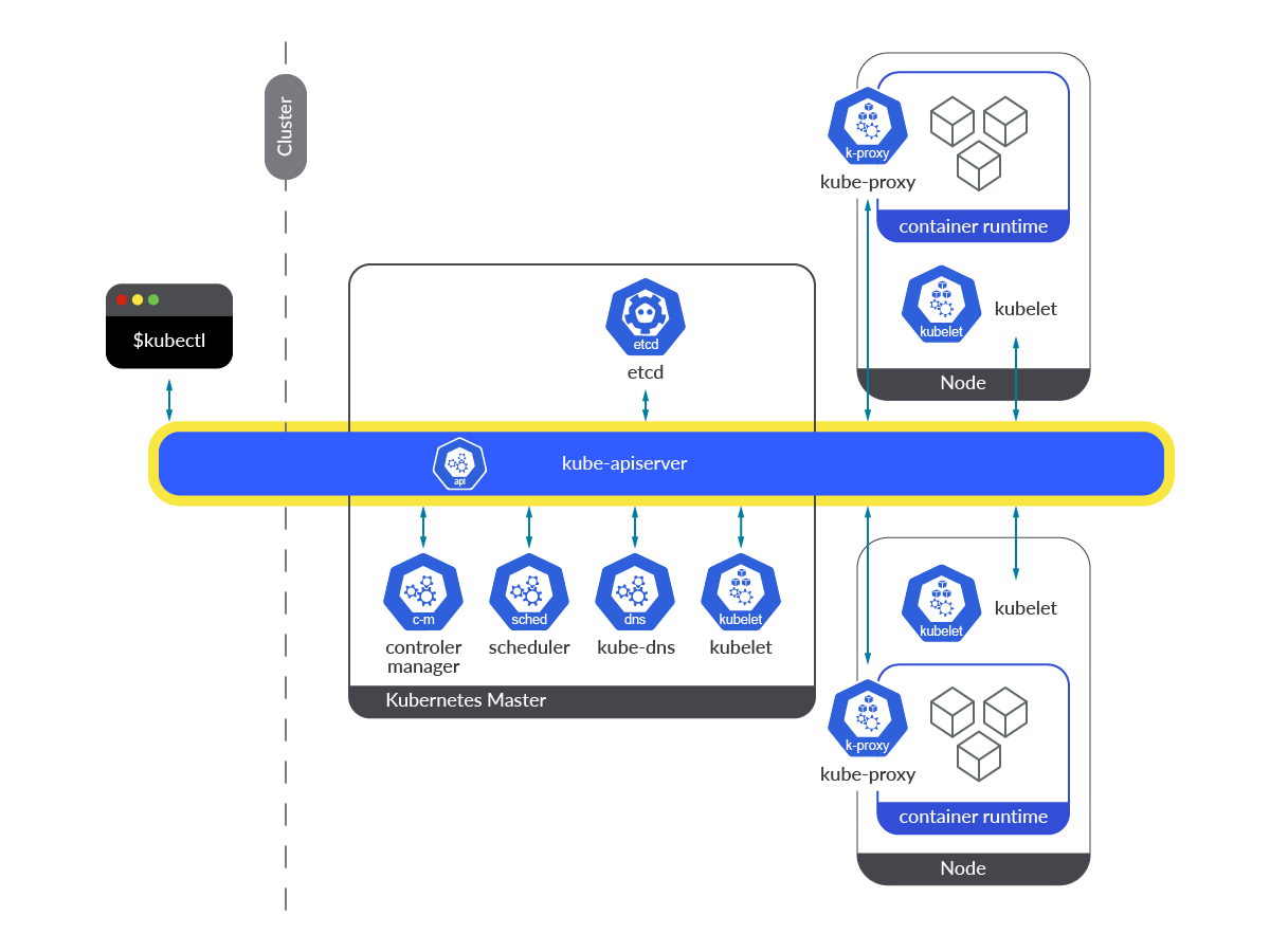 下图引用自文章,这张图可以很好的展示apiserver作为控制面的核心组件,在集群内的关键作用。