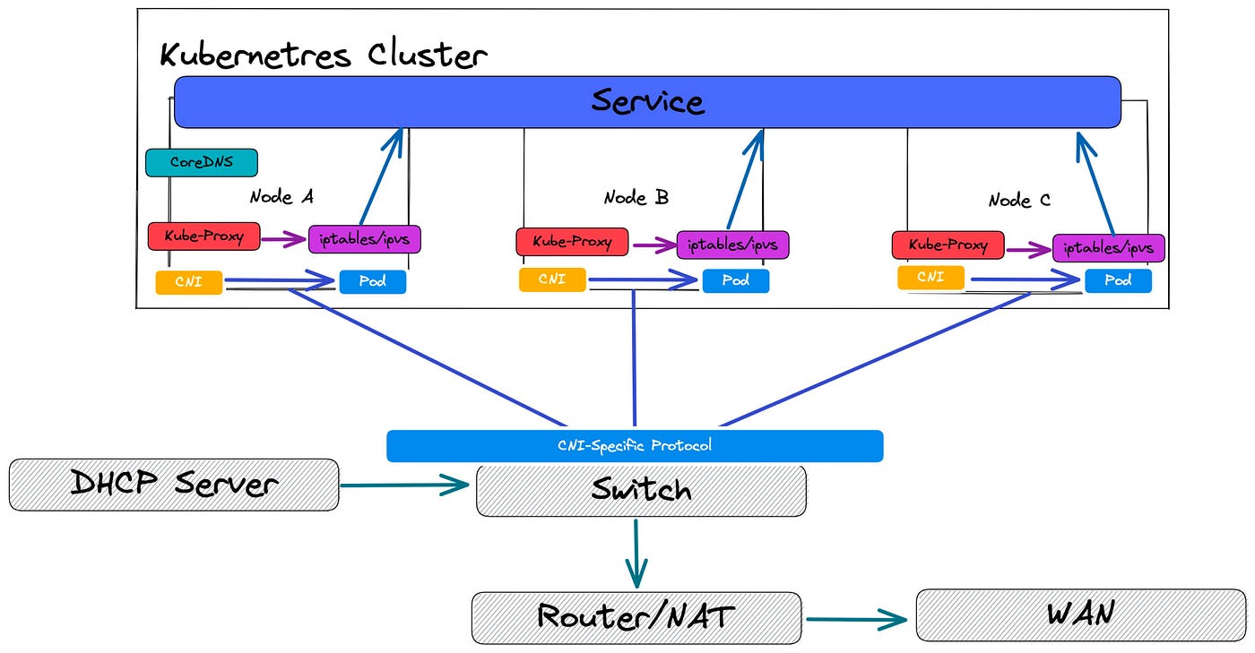 kube-proxy会通过iptables、IPVS或 eBPF 等技术,把流量透明地转发到某个后端 Pod。 - 有些高级网络插件(比如 Cilium、Calico)会用自己的代理机制替代